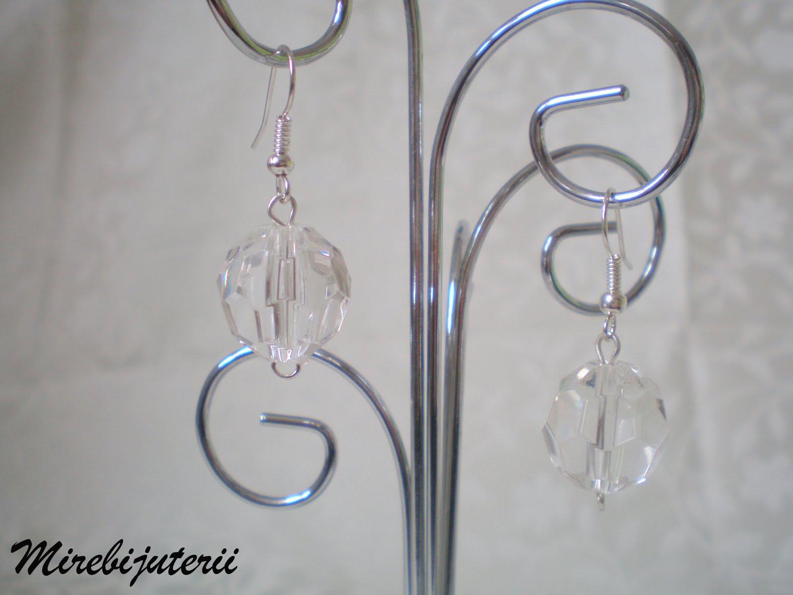 Cercei confectionati din cristale si perle din sticla si accesorii argintii
